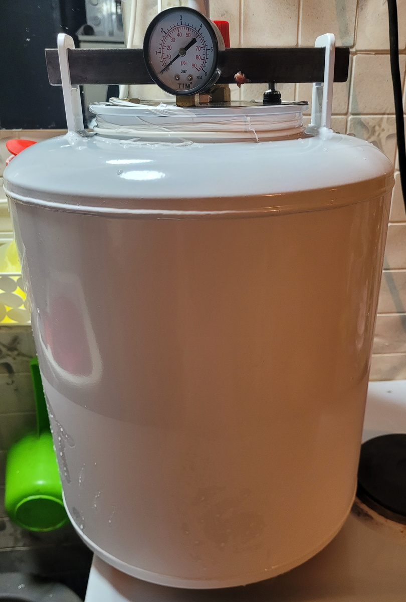 Добрый день. Давно мечтала приобрести автоклав. И тут решилась. Заказала на озон, по цене за 6431 руб. на 24 литра. И знаете, такая отличная штука, только тяжеловатая. С водой мне самой не поднять. Немного пожалела, что на 24 литра взяла, надо было поменьше заказать. Мне ведь не нужны заводские объемы, а только для себя. Получила его в пятницу и решила вечерочком попробовать. Достала все мясо, которое было в морозилке, а это и говядина, и курица разными кусочками, разложила все по банкам, бросила соли на глаз, листочек лаврушки, перец горошком, закрутила крышками и запустила. Догнала манометр до 2 атмосфер, оставила остужать на ночь. Утром достала банки, захотелось попробовать. Получилось все отлично, сварила суп сразу же из одной банки. Так косточки все стали мягонькими, вкус супер, а аромат как у тушенки из СССР.... В воскресенье заехали в магазин, купили свинины, скумбрии и форели 2 рыбки. Решила свинину и скумбрию сразу же запустить. Вот тут я косячнула малость. Нужно было ра