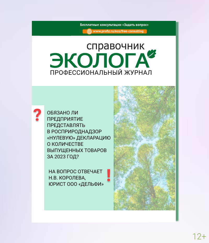 👍Ставьте отметки! Мы поймем, что тема актуальна для вас 😉 ✅Подписчики журнала «Справочник эколога» и «ЭкоСпоры» могут получить ответы на вопросы бесплатно. СИТУАЦИЯ В 2022 году предприятие выпускало продукт в упаковке, соответственно, за 2022 год упаковка была задекларирована (декларация о количестве выпущенных товаров представлялась в Росприроднадзор). В 2023 году был сдан отчет о выполнении нормативов утилизации и уплачен экологический сбор. В 2023 году предприятие не осуществляло выпуск продукции в упаковке. ВОПРОС На основании каких нормативных правовых актов Росприроднадзор может требовать представление «нулевой» декларации о количестве выпущенных товаров и вменять штраф? ОТВЕТ Обязанность представления отчетности по РОП[1] предусмотрена законодательством только для субъектов РОП (производителей, импортеров товаров из Перечня № 3721-р[2] для 2023 года). Соответственно, если вы таковым не являетесь, то и обязательств у вас также нет. Привлечь к административной ответственности по