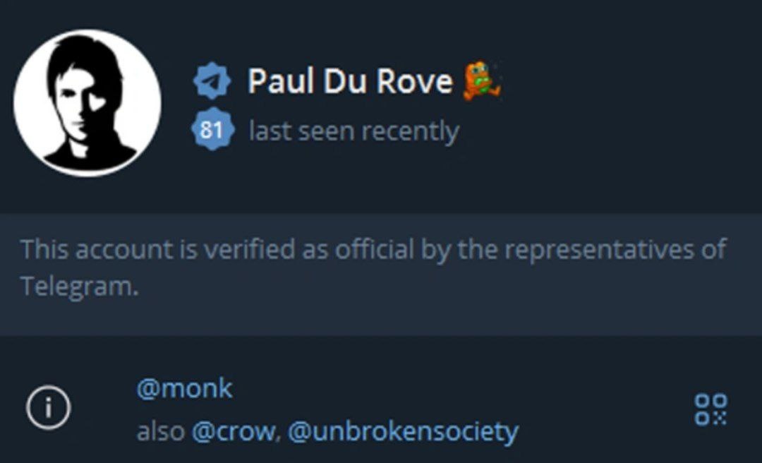 А первый знак подтверждения подлинности у основатель мессенджера Павла Дурова.