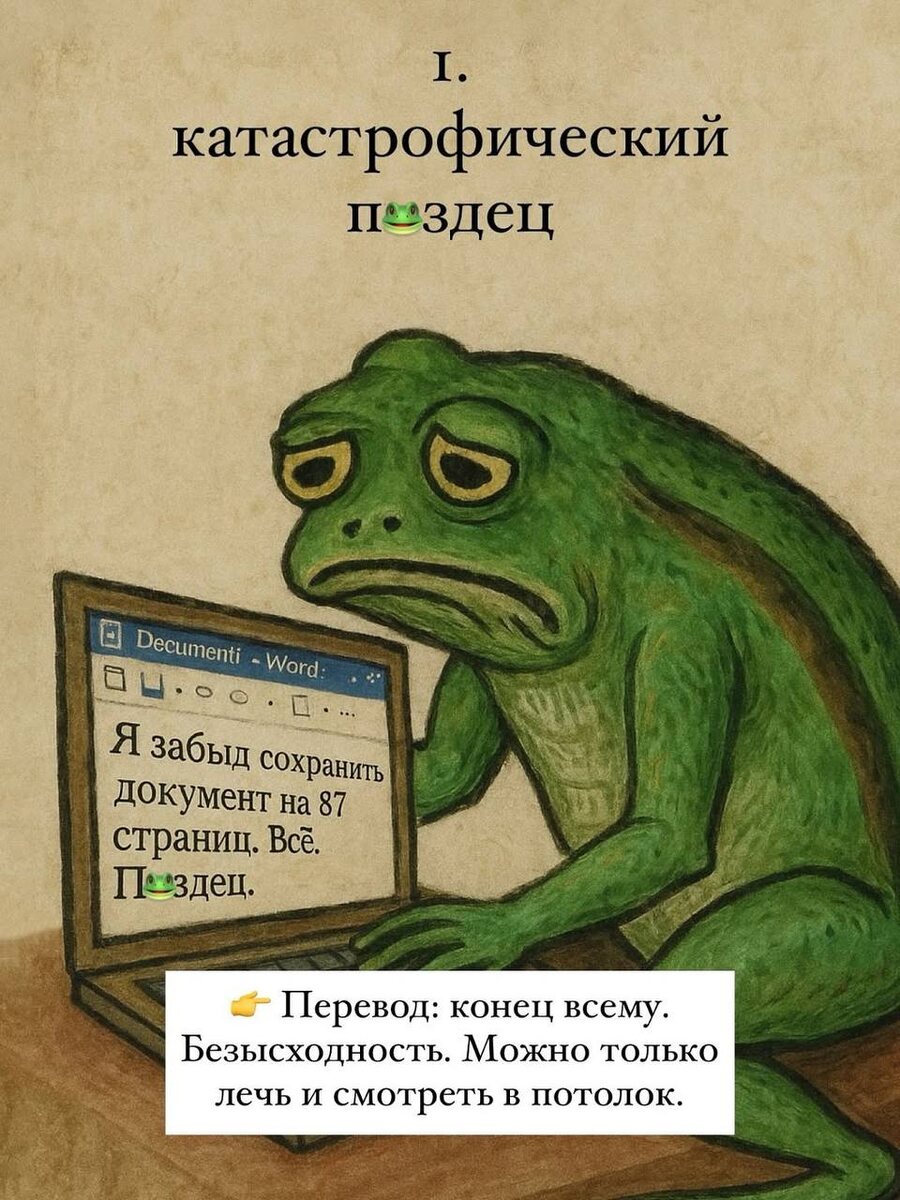 В сети завирусились десять оттенков полного пи*деца — от катастрофического до безмолвного. Выбираем свой и рассылаем по рабочим чатам.