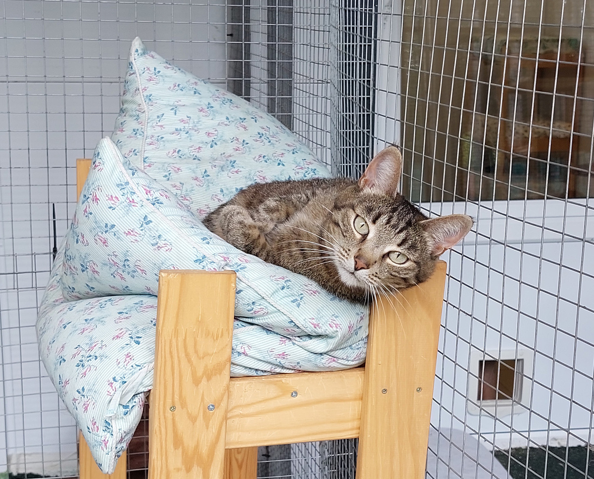 Пуля — это обычная полосатая кошечка, но с большой харизмой)) Пулей ее прозвали за способность мгновенно вылетать из вольера как только открывается дверь. Пуля — молодая заводная кошка, поэтому с ней вам не будет скучно. Но конечно для такой кошки вам необходимо обезопасить дом сетками антикошка, чтобы уберечь саму Пулю от последствий ее неуемной энергии! Поэтому, помимо сеток антикошка, стоит позаботиться о том, чтобы на полках не было бьющихся предметов, а шторы были надежно закреплены. Иначе веселье может обернуться небольшим погромом. Пуля – это не просто кошка, это вихрь энергии, завернутый в полосатую шубку! Она обожает играть, гоняться за солнечными зайчиками и устраивать засады на плюшевых мышек. Ее игривый нрав заразителен, и она с удовольствием вовлечет вас в свои кошачьи забавы. Готовьтесь к утренним тыгыдыкам и вечерним обнимашкам – Пуля умеет быть ласковой, когда устает от своих проделок. Пуля очень любопытна и обожает исследовать новые места. Она с удовольствием будет сле