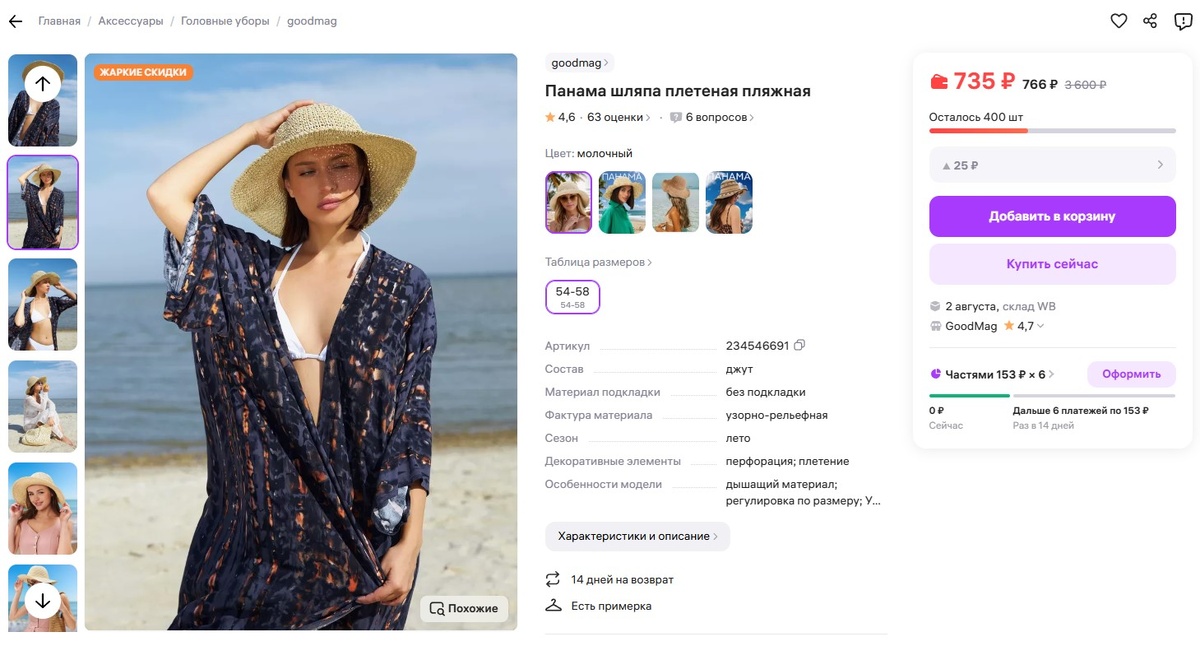 1. Шляпа пляжная