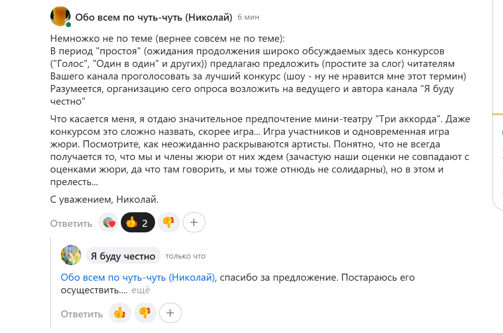 Один из моих прекрасных читателей, Николай, внес нам с вами интересное предложение. Ну, а почему бы и нет? Давайте проведем голосование и выясним, какие музыкальные проекты вам нравятся больше всего, какие шоу вы ждете в новом сезоне, по каким скучаете. Голосовать можно за сколько угодно вариантов. В голосование я включила те музыкальные конкурсы, которые мы с вами смотрим и обсуждаем на моем канале. "Ледниковый период", конечно, не музыкальное шоу, но пусть тоже будет, мы ведь с вами и его смотрим. Да и музыка там присутствует как одна из главных составляющих. А через неделю я покажу, какие у нас получились результаты. Спасибо всем, кто поучаствовал. А если вы хотите, чтобы я сделала еще какой-нибудь опрос, или у вас есть интересная тема для статьи - обязательно напишите об этом в комментариях.