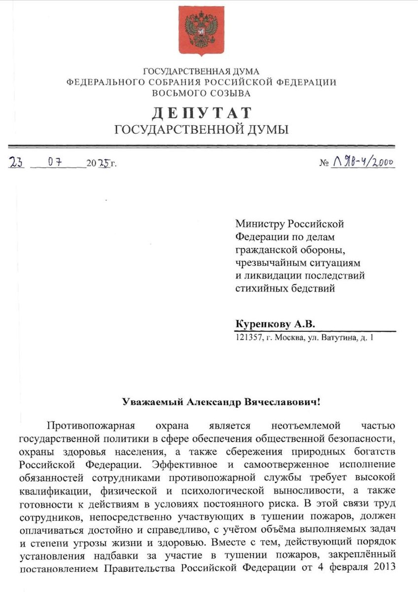 🔥❗️Надо пересмотреть систему оплаты труда пожарных 🔴отменить лимит в размере 20% должностного оклада по надбавке за участие в тушении пожаров; 🔴внедрить прогрессивную шкалу начисления указанной надбавки, учитывающей как категорию сложности пожара, так и количество дней участия в тушении в пределах месяца. 📩Направила такое предложение главе МЧС Александру Куренкову. 👩🚒Сейчас сотрудникам противопожарной службы, участвующим в тушении пожаров 3-й и более высокой категории сложности, устанавливается надбавка в размере 2% должностного оклада за каждый день участия, при этом общая сумма выплаты не может превышать 20% должностного оклада в месяц. В условиях лесопожарного сезона или в отдельных субъектах РФ, где наблюдается высокая пожароопасность, сотрудники, участвующие в тушении пожаров 15 и более дней в месяц, не получают соответствующего материального вознаграждения сверх установленного лимита. 💦Отсутствие градации в размерах надбавки в зависимости от категории сложности пожар