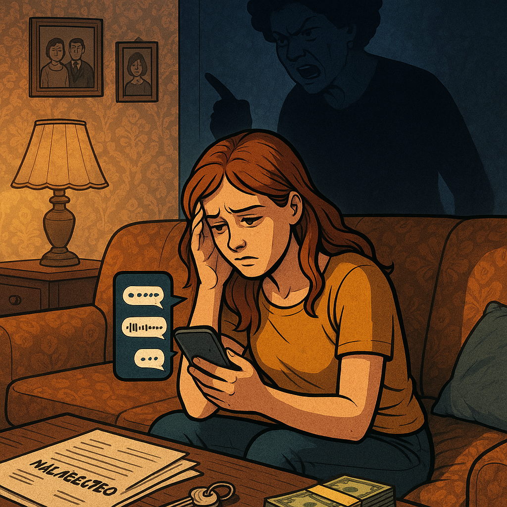 Эта история классический пример того, как близкий человек использует чувство вины и страх для манипуляций. Это юридически и психологически сложная ситуация.