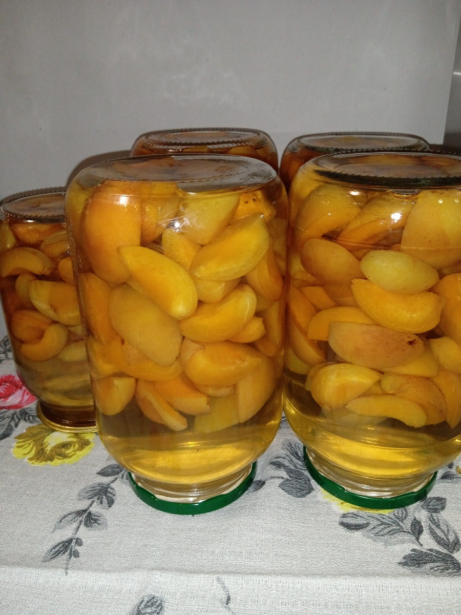 В этом году собрали урожай абрикос, до этого несколько лет абрикос даже не цвел. Поэтому закрыла абрикосовый компот на зиму. Абрикосы помыть. Разрезать пополам и вытащить косточку. Если абрикосы крупные, разрезать на 4 части. Приготовить банки, вымыть с содой и стерилизовать удобным для вас способом. Я кипячу банки в небольшой кастрюле. Закипятить большую, у меня 6 литров, кастрюлю воды. Разложить абрикосы по стерилизованным банкам, наполняя банки на две трети. Залить кипятком и накрыть крышкой. Оставить на 10 минут. Слить воду из банок в кастрюлю, добавить сахар, 2 стакана на трехлитровую банку. Закипятить сироп. Залить кипящим сиропом ягоды. Закатать горячими стерилизованными крышками. Закатанные банки перевернуть, укрыть и оставить на пару дней. Хранить консервированный абрикос в подвале. Консервированный абрикос можно есть так, добавлять в выпечку. Сироп для питья необходимо разбавлять минералкой или кипяченой водой. Можно использовать сироп для пропитки тортов. Надеюсь, что стат