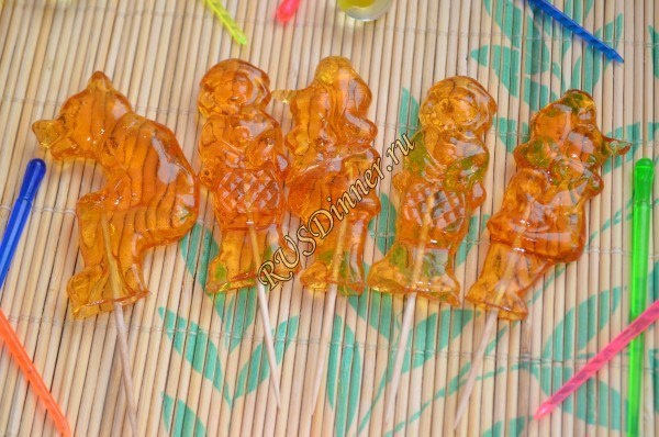 Леденцы на палочке От автора: Если нет специальной формы для леденцов, то можно использовать силиконовые формочки для льда. Ингредиенты: Сахар - 125 гр. (5 ст. л. с горкой) Вода - 36 мл. (2 ст. л.) Уксус столовый 9 процентный - 18 мл. (1 ст. л.) Масло растительное - 15 мл. (для смазывания формы) Источник: https://rusdinner.ru/page/ledency-na-palochke