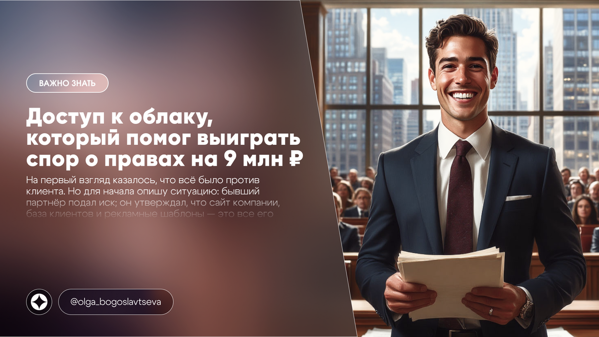 💼 Доступ к облаку, который помог выиграть спор о правах на 9 млн ₽