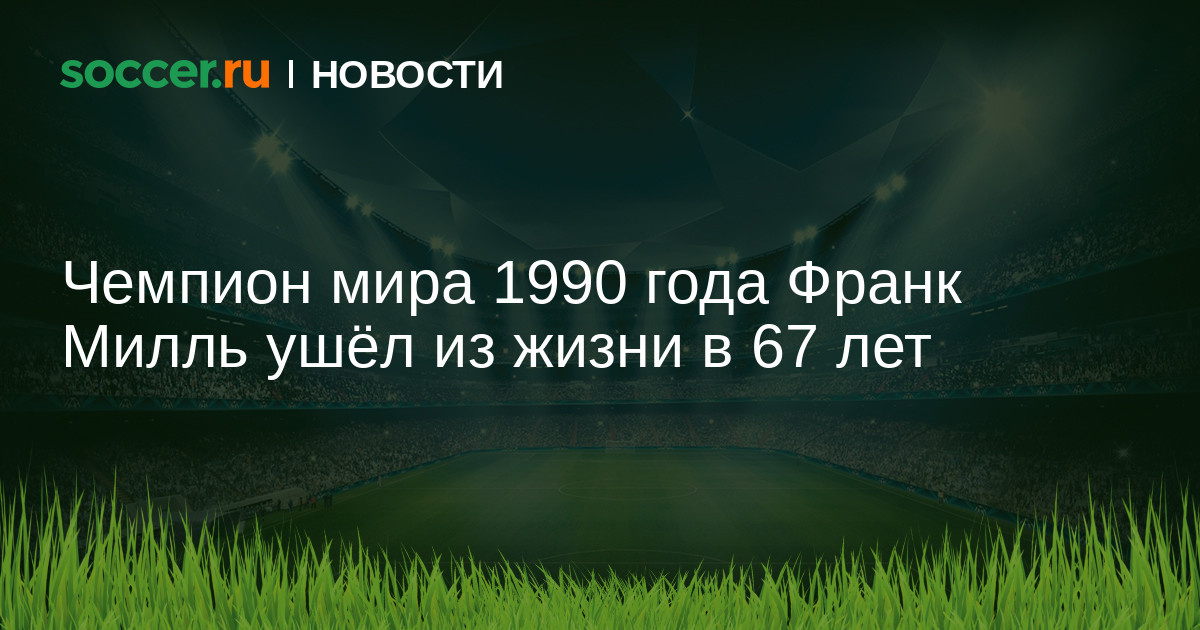 В немецком Эссен в возрасте 67 лет скончался чемпион мира 1990 года в составе сборной ФРГ Франк Милль. В конце мая бывший футболист перенес инфаркт, находясь в итальянском Милане, и был помещен в состояние искусственной комы. После того, как состояние Милля удалось стабилизировать, его доставили в одну из больниц Эссена, где он и находился до своей смерти. Милль провел 17 матчей за сборную ФРГ и в ее составе выиграл чемпионат мира 1990 года, который проходил в Италии. На клубном уровне Франк выступал на позиции нападающего за «Рот-Вайсс» (Эссен), «Боруссию» из Менхенгладбаха, «Боруссию» из Дортмунда, а также за «Фортуну» из Дюссельдорфа.