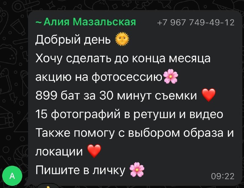 У Али акция на фотосессию.
