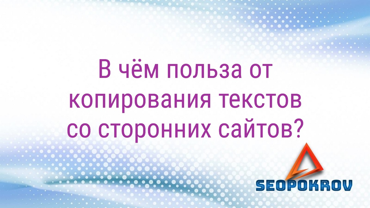 Автор: Антон Сестрицкий Когда человек начинает создавать сайт, он задумывается над его наполнением. Откуда взять контент, написать ли тексты самому. А если писать не умею, могу ли скопировать информацию со стороннего сайта? Так и подобным образом рассуждает наконец-то принявший решение перенести свой бизнес на просторы Интернета человек. Естественно, речь в таком случае идёт о сайте той же тематики. А значит, копирование текста подразумевается с сайта конкурента. Копировать несложно. Это и быстро, и на сайте будет актуальная информация. Как раз о том же товаре, услуге, что предлагает и Ваш оппонент, у которого была заимствована полезная информация. Многие так и делают. А порой даже тексты для раздела 'О компании' копируются! И особенно это актуально для тех историй, когда сайт выполняется в условиях крайней экономии. Или же когда дело не только и не столько в экономии, а вот человек просто решает для себя, что это просто, это несложно, смотри-ка, получается! Не хочу никому платить, пис