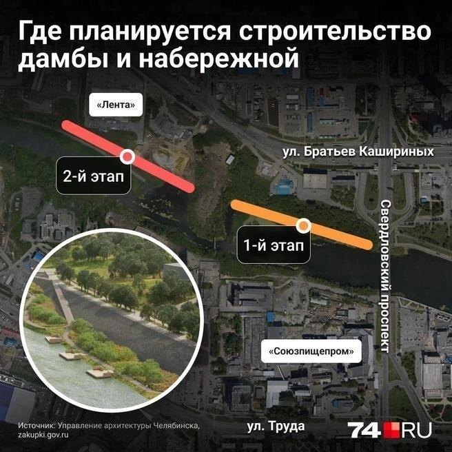 В ответ на пост Администрация Челябинска с пятого раза нашла подрядчика для строительства новой набережной реки Миасс от Свердловского проспекта до улицы Косарева Единственным участником конкурса стала компания «ДСК-Урал», с ней и подписали контракт на 552,3 миллиона рублей. 🟥 Что сделают? Укрепят берег реки на участке длиной 840 метров и благоустроят территорию. На работу у компании есть чуть больше года — до 31 августа 2026 года.