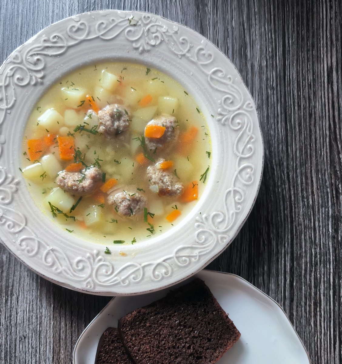 Я беру самые простые продукты, без всяких сложностей, и варю суп. Никаких ритуалов и лишних хлопот - только тепло, которое потом разливается по всему дому и будто окутывает нас мягким одеялом. Самое удивительное, что эта простая тарелка супа способна вернуть чувство семейного счастья и тепла сильнее любой кружки чая. А ведь, наверное, именно в таких простых моментах и живёт всё самое важное, что хочется передавать дальше. Ингредиенты: Фарш (говядина или свинина) 300 г Птитим (макароны) - 50 г Лук репчатый - 1 шт. Морковь - 1 шт. Картофель - 2 шт. Бульон (куриный или овощной) - 1,5 л Чеснок - 1 зубчик Соль, перец, зелень (петрушка или укр