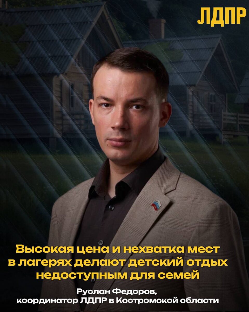 Доступный детский отдых должен стать приоритетом: в ЛДПР обеспокоены ситуацией с ценами на путевки в детские лагеря ❗️ Летние каникулы для многих костромских семей омрачаются высокими ценами на детский отдых. Об этом заявил депутат Костромской областной Думы от ЛДПР Руслан Федоров, подчеркнув, что для многих родителей это становится серьезной финансовой проблемой. «За возможность отправить ребенка в лагерь родителям приходится отдавать половину, а то и всю зарплату. Разве это нормальная ситуация?» - подчеркнул он. По данным ЛДПР, цены на путевки по всей стране выросли на 10-40%. В результате многие дети лишены возможности полноценно отдохнуть и подготовиться к новому учебному году. Руслан Фёдоров отметил, что подростки, оставленные без присмотра, часто предоставлены сами себе, забираются на крыши и совершают другие «подвиги», что создает дополнительное беспокойство для родителей и полиции. ↗️ Решением, по мнению представителей ЛДПР, могли бы стать оздоровительные сертификаты на пут