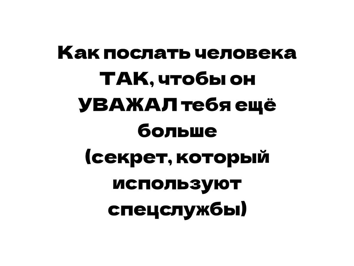 (секрет, который используют спецслужбы): 🔸Главное - не злость, а спокойствие. 🔸Всегда адресуй поступок, а не личность. продолжать общение в таком формате". Не "ты меня бесишь", а "мне важен другой стиль контакта". Это звучит взрослым, автономным и уверенным. Ты не объясняешь — ты ставишь точку. 🔸Не оставляй дверь приоткрытой. 🔸Не давай эмоциональных поводов. 🔸И главное - после того, как послал, не возвращайся.
