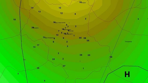 Минувшая ночь в столичном регионе продолжила череду сильных дождей, и хотя на базовой метеостанции столицы ВДНХ выпало всего 6 мм осадков, что в пределах обычной суточной нормы, на других метеостанция города ливни были сильными. Так, в осадкомеры на метеостанции МГУ за ночь попало 18 мм дождя, что составляет около четверти (23%) нормы августа. Добавим, что первые 4,5 дня августа принесли в столичную копилку небесной влаги уже 43 мм осадков, или больше половины (55%) положенного за весь месяц. В Московской области сильные дожди в течение ночи зафиксированы в Красногорске и Талдоме, где выпало по 15 мм осадков, в Ново-Иерусалиме – 16 мм дождя, в Можайске – 26 мм осадков. Но самым дождливым местом региона ночью стал Наро-Фоминск – там пролилось 71 мм осадков – т.е. на каждый квадратный метр площади вылилось более чем по 7 полноценных 10-литровых вёдер воды! Это, во-первых, составляет 111% месячной нормы, а во-вторых, там обновлён суточный рекорд по количеству выпавших осадков, который ока