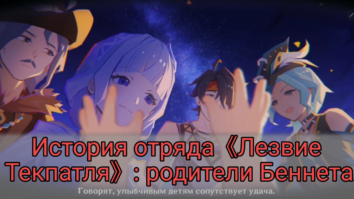 В третьей главе летнего сюжета Genshin Impact игрокам раскрыли одну из самых трогательных и долгожданных историй — тайну происхождения Беннета. Повествование внезапно сменило тон с лёгкого курортного настроения на глубокую и эмоциональную линию, связанную с отрядом «Лезвие Текпатля» — и семьёй самого Беннета. Во время задания отряд Бени вместо своих фото обнаруживает снимок группы таинственных искателей приключений. Один из них оказывается знакомым — Беннет сразу узнаёт на фото отряд Лезвие Текпатля. Благодаря наблюдательности Часки, друзья находят место съёмки и оказываются у входа в таинственное подземелье. Однако влияние Бездны разделяет компанию: Беннет остаётся один, его затягивает неведомая сила, и лишь своевременная помощь товарищей спасает его от гибели. Именно тогда юноша переживает нечто большее, чем просто страх — он впервые видит воспоминания о своей семье. Во сне Беннет наблюдает прошлое. Ему открываются образы его родителей: Они — члены отряда «Лезвие Текпатля», сражавш