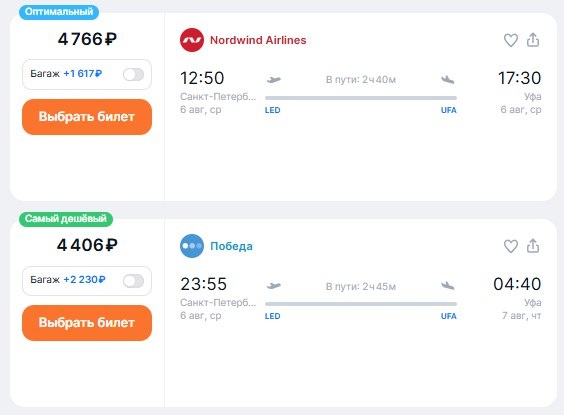✈️Санкт-Петербург - Уфа, прямой рейс от 4400 рублей