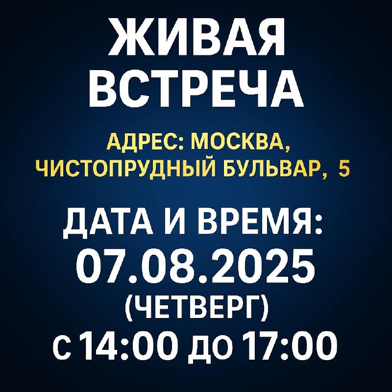 В ответ на пост 📢Живой встрече - нетворкингу - БЫТЬ! Коллеги, спасибо Вам за Вашу активность! Исходя из опроса встрече - быть! Будет проходить по адресу: 🌐 Адрес: Москва, Чистопрудный бульвар, 5 (Конференц зал в Эндис энд френдс) 🔜 Дата и время: 07.08.2025(Четверг) с 14:00 - 17:00 Проведем с Вами живой нетворкинг по маркировке Честный Знак и белому импорту! Расскажу свой многолетний практический опыт импорта и с какими трудностями сталкиваемся, дам практические советы по работе с импортом и маркировкой. Разберем ЛЮБЫЕ Ваши вопросы в неформальной обстановке! По вопросам касаемо встречи можете обращаться к https://t.me/markznak_manager либо в комментарии к этому посту. Предварительная запись также к @markznak_manager - чтобы понимали сколько будет ориентировочно человек 🤝 ✅МЕРОПРИЯТИЕ БЕСПЛАТНОЕ Всех буду рад видеть, познакомиться, пообщаться! 🫶