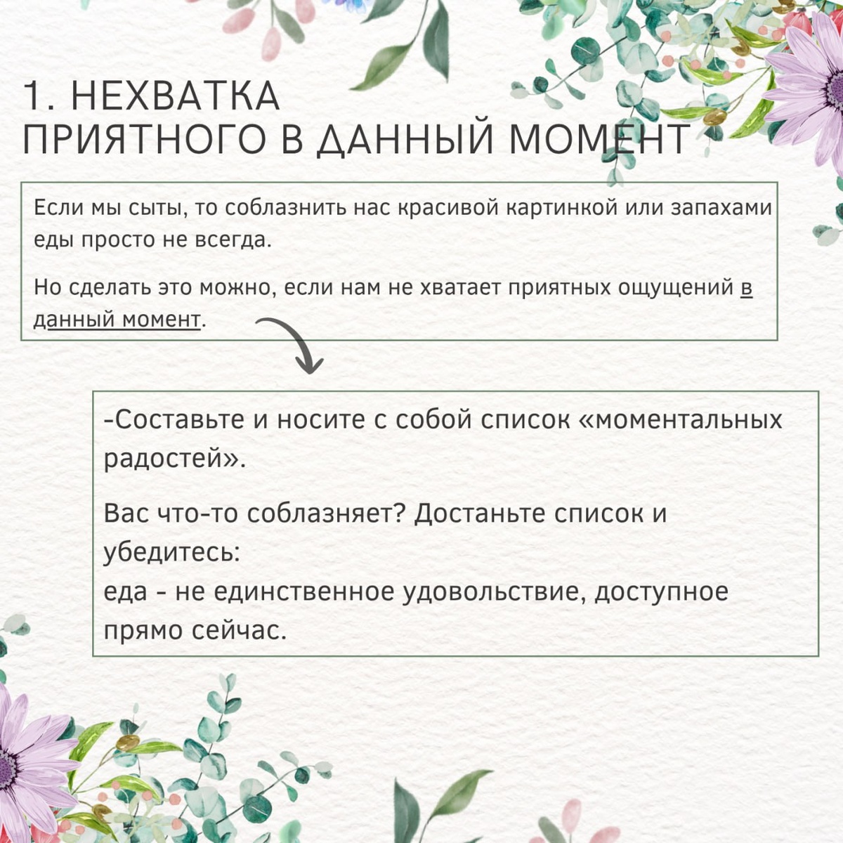 9 секретов, чтобы перестать переедать Переедаю потому, что "мне вкусно"? В предыдущем посте я перечислила 9 настоящих причин такого переедания. А что вы можете сделать с этим - в карточках. 🌿🌿🌿🌿🌿🌿🌿🌿🌿🌿🌿 Кто хочет начать управлять своим перееданием, ставьте ❤️)