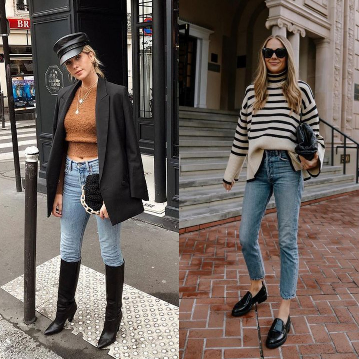 Тем, кто ценит элегантность без каблуков, подойдут лоферы. С узкими джинсами они создают образ в духе французского "преппи".