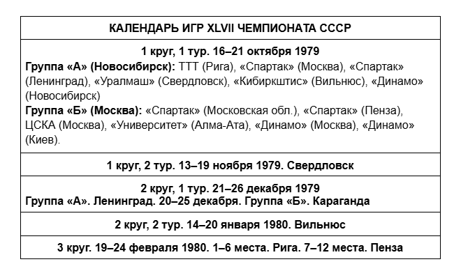 XLVII чемпионат СССР. Высшая лига. Предварительные игры. 16 октября 1979 — 20 января 1980