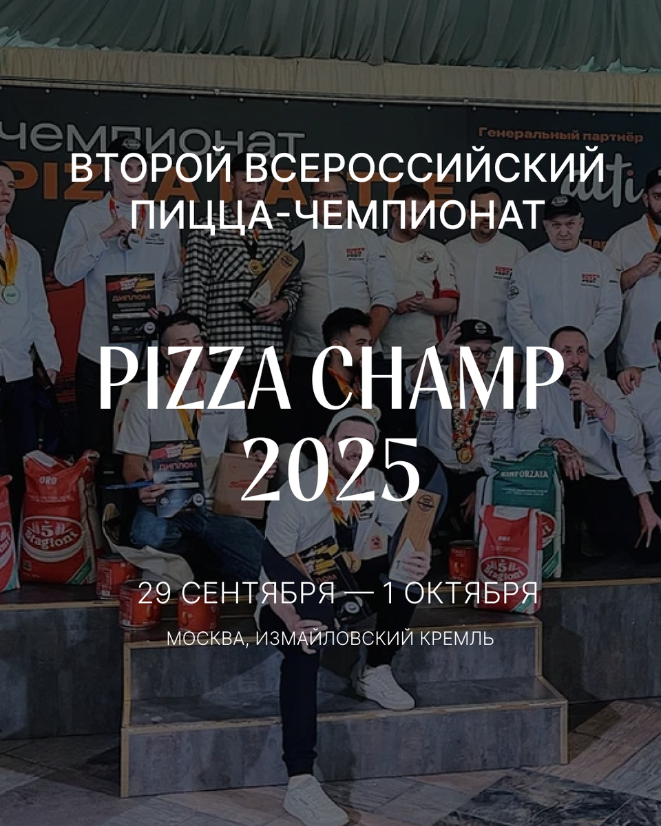 С 29 сентября по 1 октября 2025 годав Кремле в Измайлово состоится самое масштабное трёхдневное соревнование «Pizza Champ 2025» — центральное событие года для профессионалов и энтузиастов пиццы со всей России. Пиццайоли, технологи, владельцы пиццерий встретятся, чтобы выявить лучших и задать новые стандарты индустрии в стране. В программе чемпионата будут как вкусовые номинации, где участники будут соревноваться в мастерстве приготовления теста и начинок, так и технические, в том числе зрелищная пицца-акробатика, где пиццайоли покажут акробатические трюки с тестом. Чемпионаты по пицце — это всегда вкусно, красиво и зрелищно! Соревнования пройдут по шести номинациям: Состязания будут проходить по мировым стандартам, в жюри — профессионалы отрасли, шеф-повара и рестораторы, объективные эксперты, имеющие многократный опыт судейства чемпионатов по пицце. «Российская индустрия пиццы развивается стремительными темпами, и мы рады вновь собрать лучших пиццайоли страны на одной площадке. Наша ц