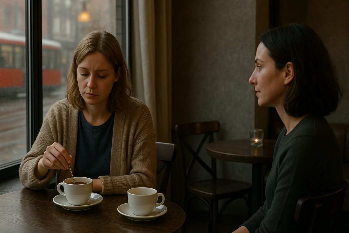 Они замолчали. В кафе было тепло, пахло ванилью и глинтвейном. За окном — слякоть, трамваи и поздний ноябрь.
