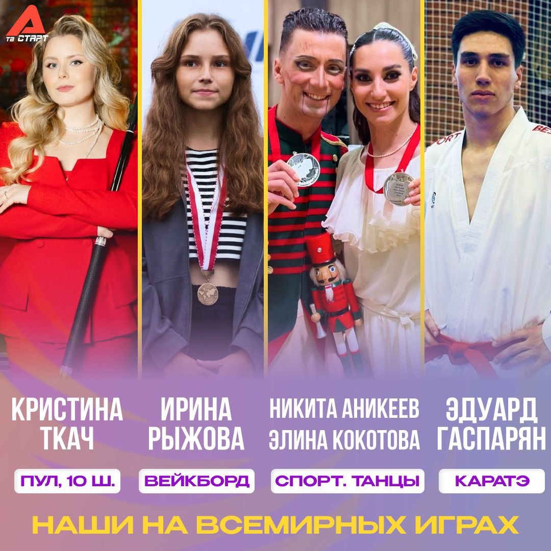 🌏🔝 От пула до вейкборда: представляем финальную четвёрку наших спортсменов на Всемирных играх Эти ребята в одиночку будут представлять нашу страну в своих видах и заслуживают отдельного респекта. Кристина Ткач – одна из главных звёзд мирового пула. Выиграла ЧМ-2024 в Пуэрто-Рико и стала лучшим игроком года по версии Billiards Digest. Абсолютно точно покорит вас своей энергетикой.. Никита Аникеев/Элина Кокотова – самый изящный дуэт нашей сборной на Всемирных играх. С номером по «Щелкунчику» под великую музыку Чайковского взяли «серебро» на ЧМ-2024 в Словакии. Ждём яркий танец в их исполнении. Эдуард Гаспарян – в январе уроженец Сочи выиграл первый этап престижной серии Karate1 Series A, а в феврале один из этапов элитной серии молодежных международных соревнований Юношеской лиги Karate1. Входит в топ-10 сильнейших каратистов своей весовой категории, что и позволило пройти отбор в Чэнду. Ирина Рыжова – наша юная звёздочка. Хрупкая девушка 2005-го года рождения взяла «бронзу» на че
