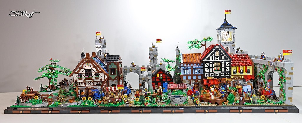 Модульный средневековый город от Sandro Damiano Автор уже собрал пятый сегмент своего огромного замкового мира, и скоро ждём шестой! Последняя часть — это рыночная площадь длиной больше 100 шипов, с 32 минифигурками и 14 500 деталями. Пекари, рыботорговцы, шуты и, конечно, рыцари Черного Сокола и Льва — все на месте. Особенно круто смотритеся дань классике — переосмысление набора 6067 Guarded Inn. Выглядит как отдельный шедевр! Источник: The Brothers Brick