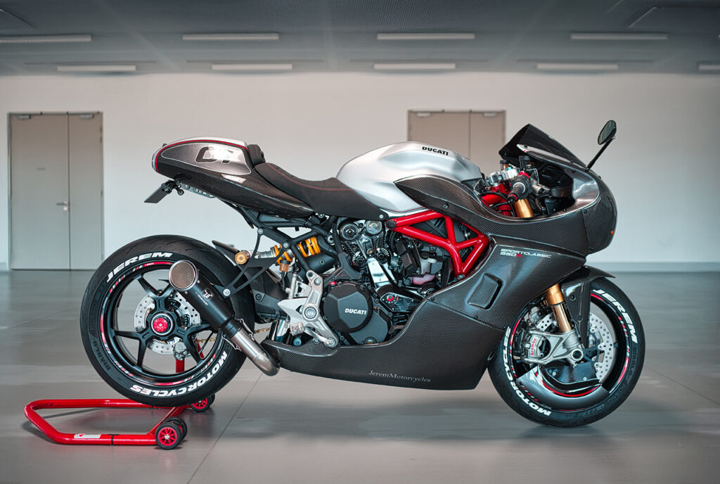 Жереми Дюшан, основатель компании Jerem Motorcycles, вдохновился спецвыпусками Пола Смарта и Hailwood и создал нео-ретро-ракету на базе Ducati 950 SuperSport. Его творение — это не просто дань прошлому, а совершенно новая интерпретация, сочетающая производительность и эстетику.
