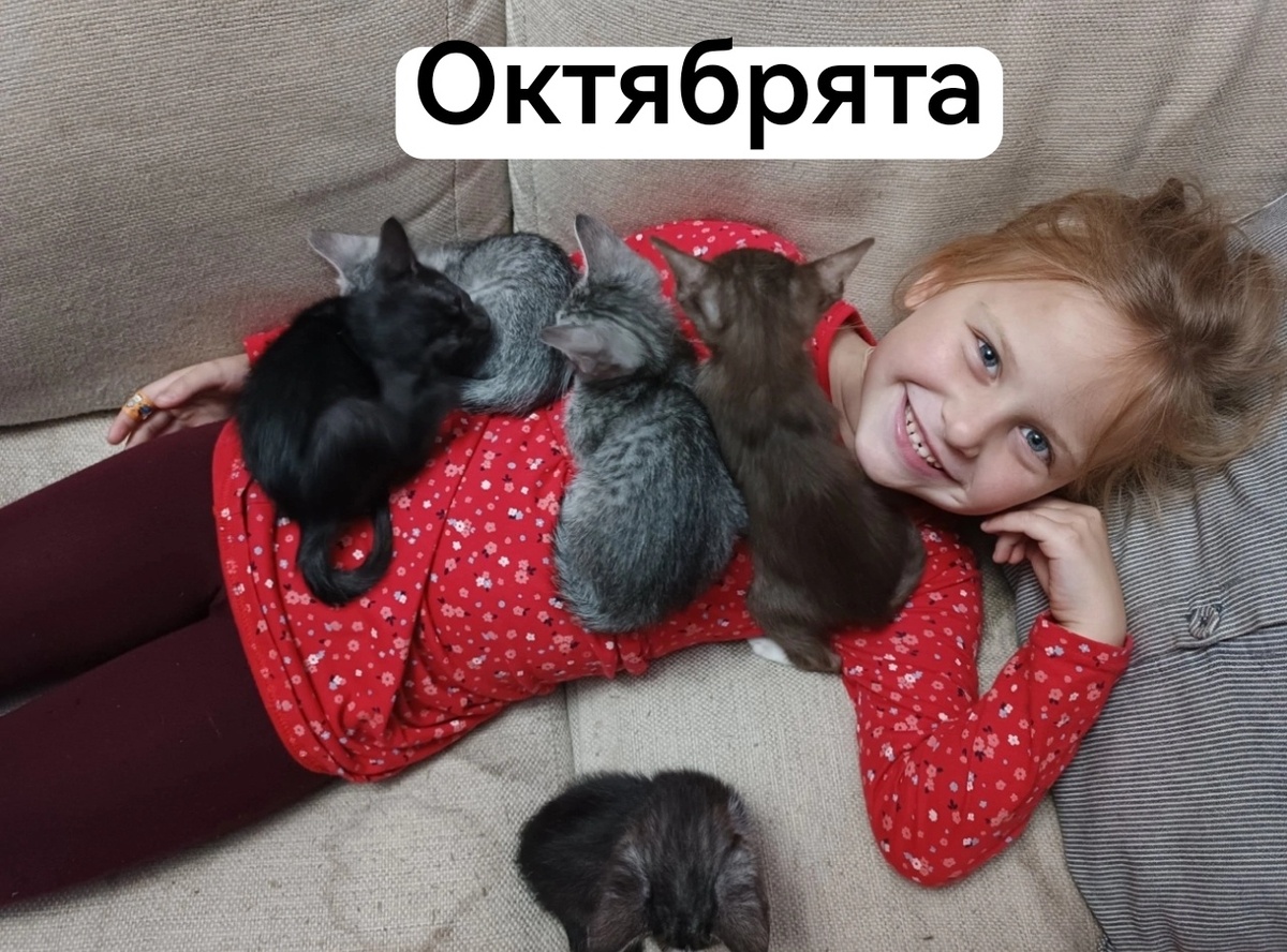 Напоминаю её удивительную историю. В октябре 23-ого нам подкинули коробку с пятью котятами с большими, совершенно особенными ушами. Мы их назвали малыши-октябрята. В сентябре 24-ого к забору принесли коробку с четырьмя детьми. Здесь уши были буквально выдающимися. Эту партию назвали ягодками. Мы ещё не всех ягодок пристроили, как 21 февраля принесли следующую партию ушанов — шестерых! Трое поехали на передержку к Анне и стали опятами, а трое отправились к Кате и были наречены богатырями. Мы думали, что теперь будет затишье до следующей партии. Но прошло буквально три дня, и у калитки появилась очередная коробка. В ней сидела ушастая кошка-ориенталка и её почти взрослый сын, я так понимаю брат ягодок, которого не подкинули в сентябре вместе с остальными, а оставили себе, для того чтобы всё-таки подкинуть в феврале и уже вместе с матерью. То, что это именно мать всех наших ушастых подкидышей было очевидно. Мы был
