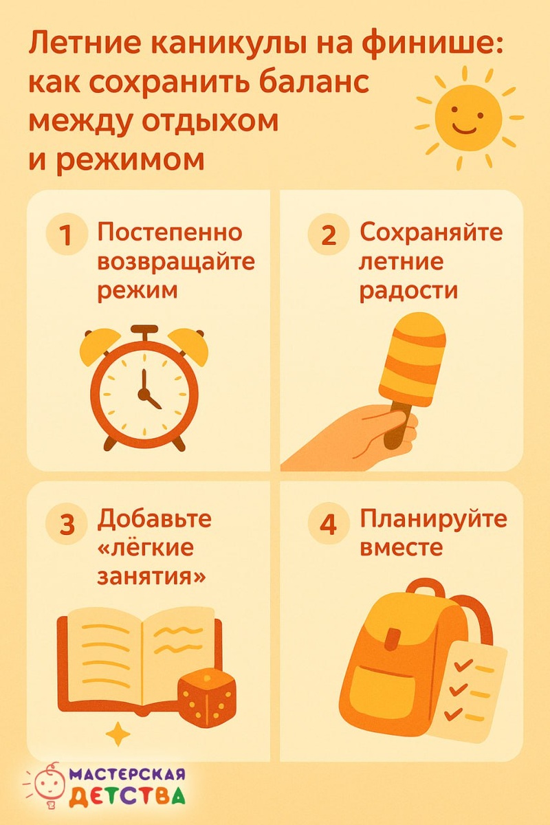 ☀️ Летние каникулы на финише: как сохранить баланс между отдыхом и режимом