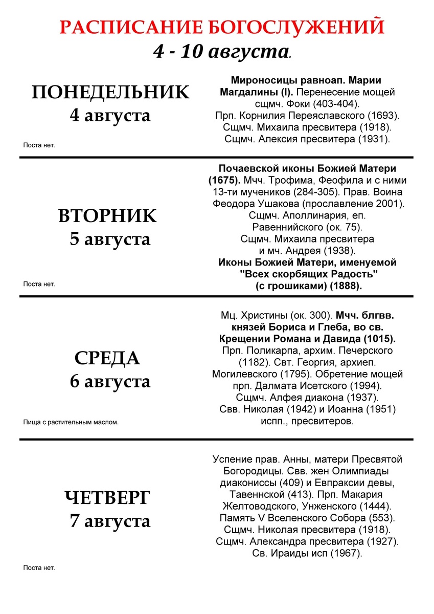 🌹🌿🌺 4 - 10 августа 🌺🌿🌹 💐СУББОТА 9 августа - Великомученика и целителя Пантелеимона Литургия: 8.00 по окончании панихида 💐ВОСКРЕСЕНИЕ 10 августа - Смоленской иконы Божией Матери, именуемой "Одигитрия" (Путеводительница) Акафист: 7.00 Молебен: 7.30 Литургия: 8.00 ✅ ПОДПИСАТЬСЯ l ПРИСЛАТЬ НОВОСТЬ