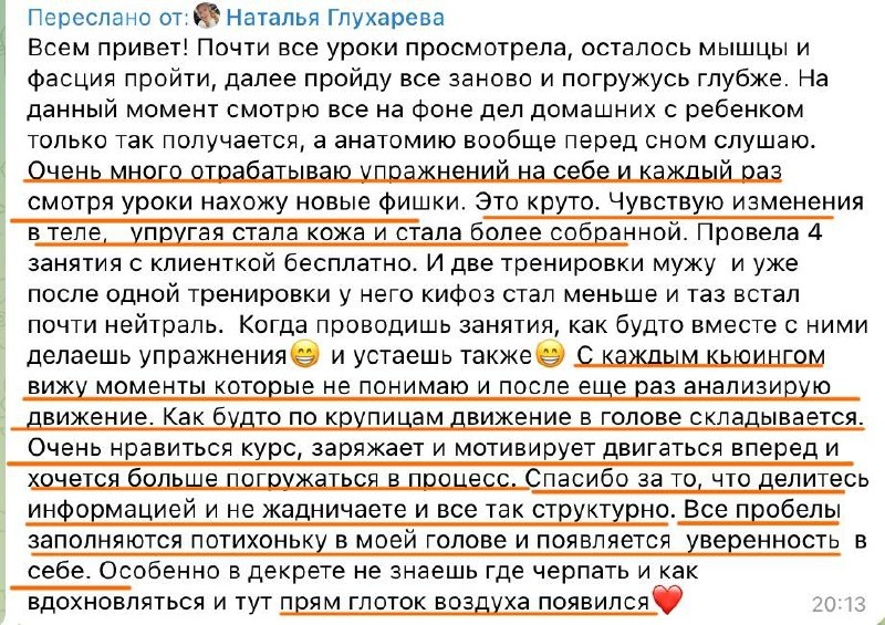 Сила холистического подхода. Когда есть система и регулярная практика — Движение в голове складывается по крупицам. Появляется структура. Все пробелы заполняются в голове. Появляется уверенность в себе. С каждым кьюингом становится понятнее, как работает тело. 8 августа в 17:00 мск я проведу практикум «Главный навык тренера в 2026» Поговорим: — Как считывать паттерны тела в движении — С чего начинать тренировки, чтобы был результат — Как осанка и походка влияют на выносливость, восстановление, боль — И что точно должен уметь тренер, чтобы быть востребованным в ближайшие годы Приходи, если устал от разрозненных знаний, хочешь быть уверенным тренером и давать результат клиентам👇 Иду на практикум