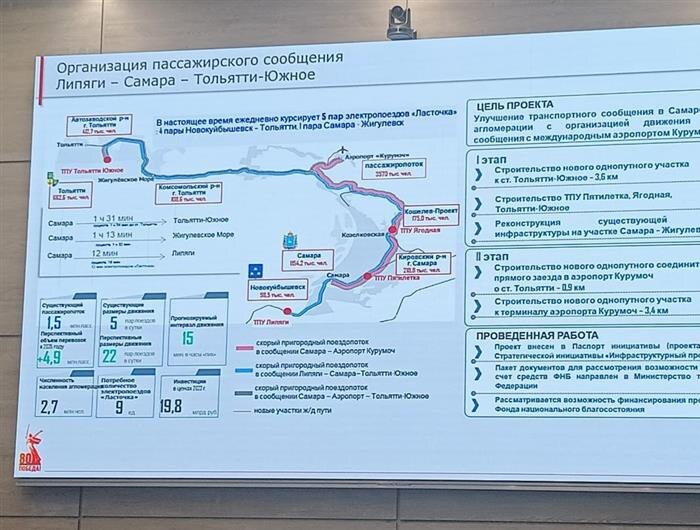 Электричку от Самары до аэропорта Курумоч планируют запустить в 2028 году. Это следует из презентации заместителя начальника Куйбышевской железной дороги - начальника службы пассажирских перевозок Алексея Ситникова, представленной во вторник, 5 августа, на стратегической сессии "Эффективная транспортная система Самарской области: основные направления развития до 2036 года". Напомним, электричка из Самары до Курумоча ходила в 2016–2018 гг., при этом, чтобы добраться от станции до самого аэропорт, необходимо было пересаживаться на автобус. Озвучивалось, что для заезда поездов в аэропорт необходимо построить железнодорожные пути для заезда из Тольятти и Самары, а также посадочную платформу у пассажирского терминала. Эти работы планируется провести в рамках проекта "Организация пассажирского сообщения Липяги - Самара - Тольятти-Южное" общей стоимостью в 19,8 млрд руб. в ценах 2022 года. Пока финансирование не выделено. При этом в презентации Алексея Ситникова сообщается, что из Самары в а