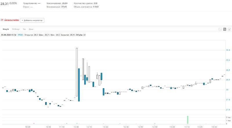 Cегодня Мосбиржа запустила торги фьючерсом с привязкой к криптовалюте Ethereum, он отслеживает динамику акций американского ETF-… Cегодня Мосбиржа запустила торги фьючерсом с привязкой к криптовалюте Ethereum, он отслеживает динамику акций американского ETF-фонда фонда iShares Ethereum Trust ETF. Тикер ETHA. Контракт истекает в сентябре 2025 года. ️Это второй фьючерс на Мосбирже и в России, который повторяет движение криптоинструмента. Первым был IBIT фьючерс на акции ETF-фонда iShares Bitcoin Trust. По состоянию на 13:52 мск оборот торгов по ETHA составил 13,99 млн. Для сравнения, в день запуска IBIT оборот торгов по нему к обеду составил около 290 млн. Торги новым инструментов начались сегодня в 10:00 мск. Котировка открытия $28,04. По состоянию на 13:55 мск криптофьючерс торгуется на уровне $28,26. Это на 0,78% выше цены открытия, и выше цены базового актива. Одна акция базового актива фонда iShares Ethereum Trust сейчас стоит $27,82. То есть в России игроки рынка ожидают, что