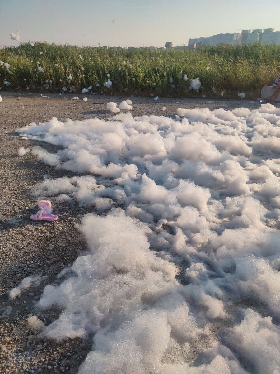 Что за пенная вечеринка возле лагуны, всю химию разнесло вокруг...