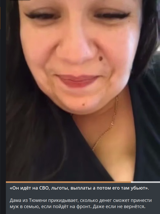 Дама из Тюмени прикидывает, сколько денег сможет принести муж в семью, если пойдёт служивым, и хочет чтобы он не вернулся