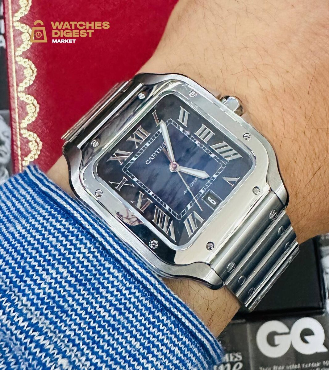 CARTIER SANTOS: ЧАСЫ, КОТОРЫЕ НЕ НУЖДАЮТСЯ В ПРЕДСТАВЛЕНИИ #обзор_WD Часы Cartier Santos de Cartier WSSA0030 — это современное воплощение культовой модели, впервые представленной в начале XX века. В 2023 году Cartier продолжает развивать линейку, сочетая винтажные черты с актуальными техническими решениями и безупречным стилем. Дизайн и материалы Корпус часов выполнен из полированной и сатинированной нержавеющей стали. Чёткие геометрические линии, скруглённые углы и фирменные винты на безеле отсылают к легендарному дизайну Santos, созданному в 1904 году для лётчика Альберто Сантоса-Дюмона. Размер корпуса — 39,8 мм в ширину, 47,5 мм в высоту и 9,08 мм в толщину, что делает модель универсальной как для повседневной носки, так и для более формальных случаев. Глубокий синий циферблат с эффектом солнечного луча украшен римскими цифрами и тонкими стрелками в форме меча. Сапфировое стекло над циферблатом обеспечивает отличную читаемость и устойчивость к царапинам. Механика и функциональн