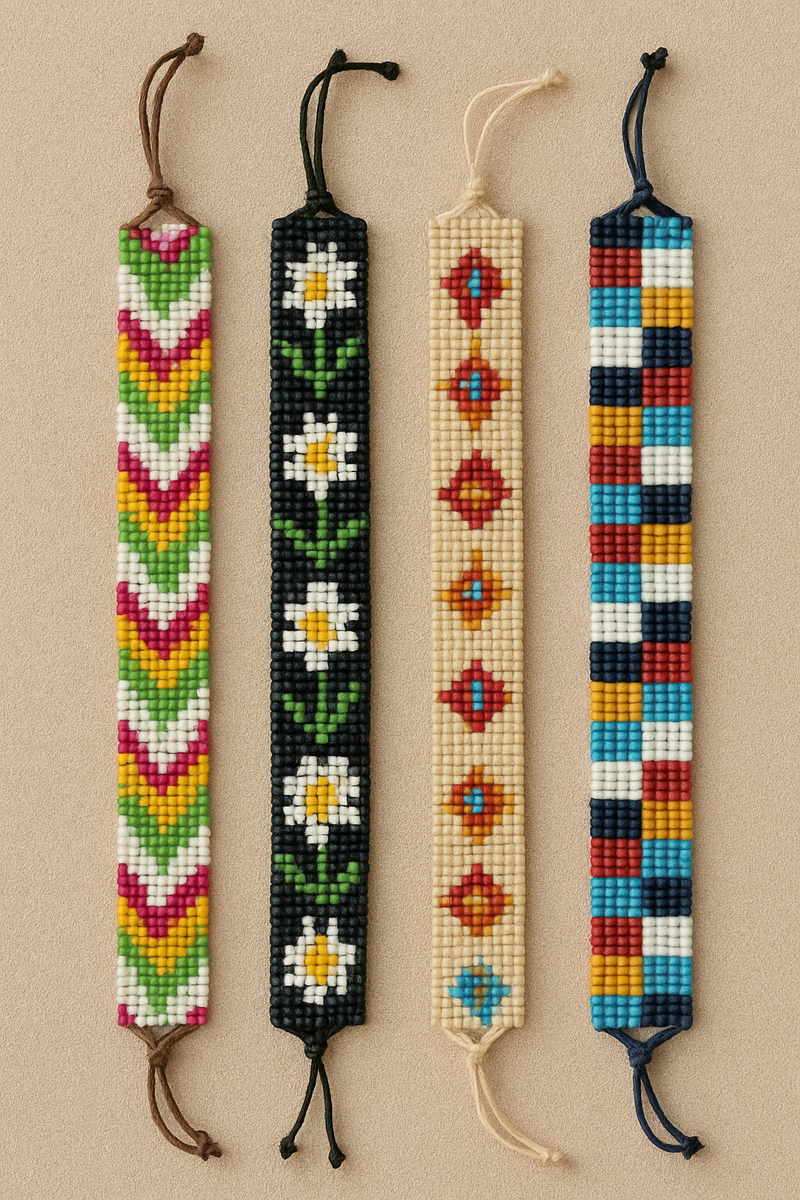 Бисерный ткацкий станок позволяет делать чёткие геометрические орнаменты — например, именные браслеты, обереги и даже картины.