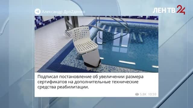 Александр Дрозденко подписал соответствующее постановление. Губернатор Ленобласти Александр Дрозденко подписал постановление об увеличении размера сертификатов на дополнительные технические средства реабилитации. Сертификат положен, если человеку рекомендовано оборудование, стоимость которого более чем в три раза превосходит прожиточный минимум в Ленобласти на душу населения. Речь о функциональных кроватях с механическим приводом, передвижных подъемниках для ванн и непосредственно ванн с сиденьем. Номинал сертификата индексирован уже в текущем году.