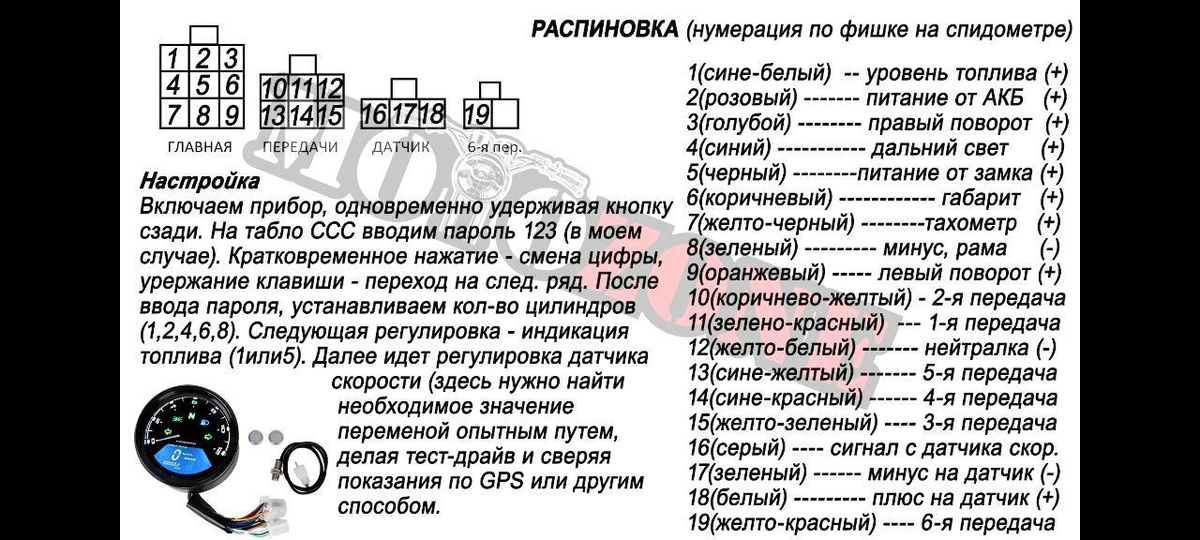 Распиновка китайского спидометра для мотоциклов Урал , Днепр , Иж.