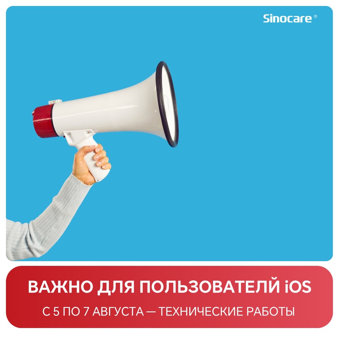 Уважаемые пользователи, Сообщаем о плановых технических работах на сервере, которые будут проводиться с 05.08.2025г. с 04:00 (мск) по 07.08.2025 г. до 12:00 (мск). Внимание! Все пользователи, которые используют устройства с операционной системой iOS: во избежание сложностей с последующим запуском, пожалуйста, воздержитесь от удаления или переустановки приложений в указанный период. В это время повторная установка будет невозможна. Если у вас возникнут вопросы, наша служба поддержки готова помочь по телефону 8 800 555 51 44 или через WhatsApp по номеру +7 910 458-41-20. #Sinocare #iCani3 #Диабет #Сахарвкрови #Здоровье #ЯМогу #ЯМогуПреодолеть #ЯМогуДостичь #ЯМогуМечтать #ТехническиеРаботы