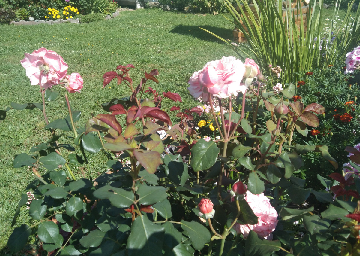 Опять приставала к розам, обстригала неугомонную розу Лоран Каброль. Шустро растёт и цветёт, я в восторге. Цветёт не волнами, а постоянно и на базальные побеги щедра, роза умничка🤗 Где-то не успеешь обрезать, уже и почки развиваются, роза сама подсказывает, где резать. Рекомендуют обрезать на треть побега, но шрабы не любят низкую обрезку. Побеги конечно тонкие, но я экспериментирую. Где то приходится и пониже стричь. Наблюдаю вот такую картину: всё побеги слепые, значит на побеге повреждения и нет сил развиваться побегам. И действительно, побег повреждён, но повреждения и на двух других, справа и слева. Но на них побеги хорошо растут, а этот я удаляю. По идее нужно после первой волны цветения, все повреждённые, плохо перезимовавшие побеги, которые было жалко удалять весной или просто не заметили, обрезать, чтобы куст наращивал больше базальных, молодых побегов. Чтобы в зиму кустик ушёл зимовать здоровый, так больше шансов на удачную зимовку. А слепые побеги с обрезанного побега мож