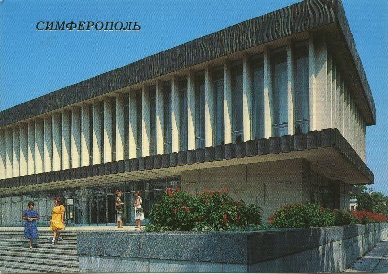 Симферополь. Музыкальное училище. 1988 год. Набор открыток "Симферополь" Издательство "Плакат". Москва, 1988 г. Тип. изд-ва "Коммунар." Зак. 1310. Цена 10 коп (за одну открытку). #Симферополь #открытки #архитектура #ретро