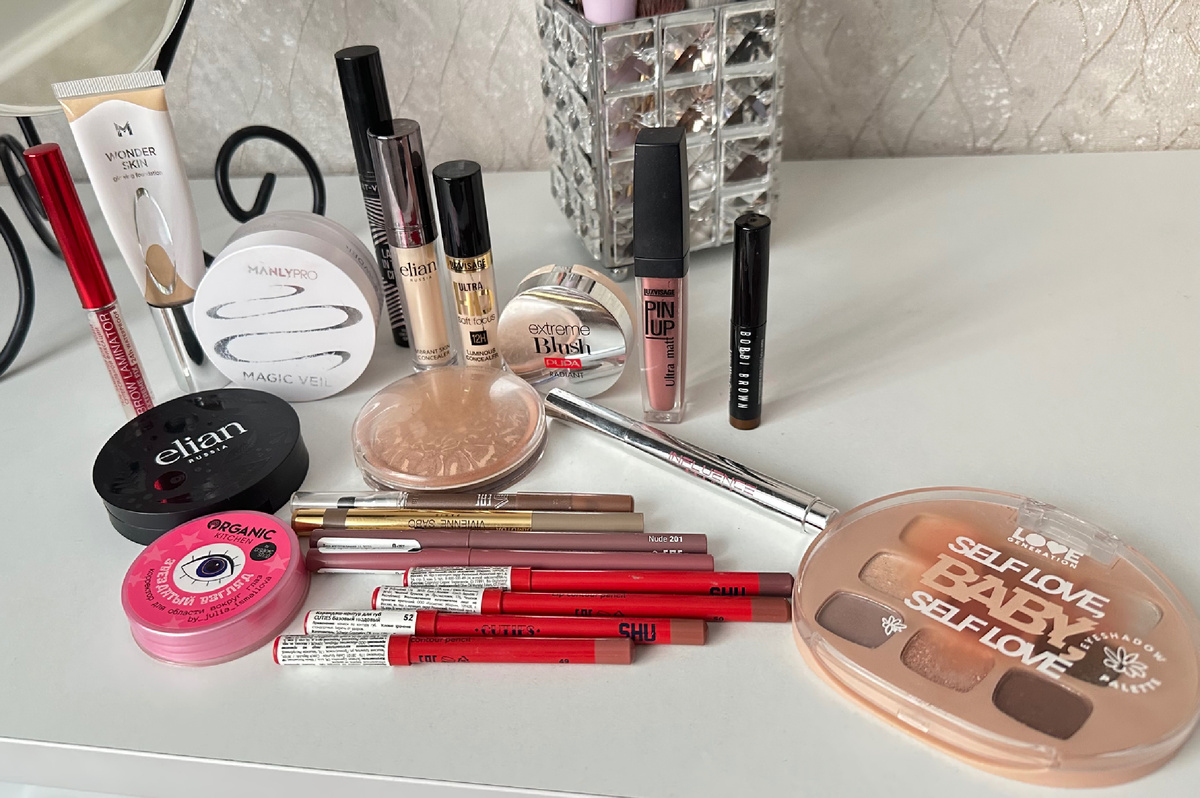 По шуршав в своей косметичке я выбрала по 1-2 средства из каждой категории. Самое важное для меня было отбирать доступную косметику, которую не нужно было бы долго ждать или заказывать у баеров.