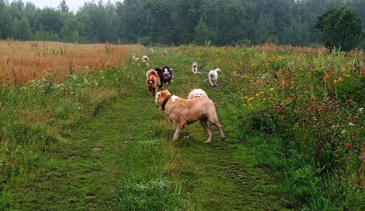 - Ууууууууу - выла Кроша, почти как Шарик в начале булгаковского «Собачьего сердца». Только заботы у нее были совершенно другие, и бок ей, к счастью, никто кипятком не обваривал. А страдала хаски вот по какому поводу. Как вы помните, мы вчера, несмотря на ливень, проводили с Равом время на улице и много играли. Все остальные собаки прятались по будкам, и лишь Кроша почему-то стояла под дождем, мокла и грустно смотрела на нас с алабайчиком. И отчаянно выла, потому что ей тоже хотелось играть-гулять, а она находилась в вольере. Поэтому сегодня, встав в 5 утра, я сразу отправилась на прогулку с собаками. Приняв тот факт, что собрать «комбо» из сухой дороги, не слишком высокой температуры и отсутствия необходимости куда-либо ехать этим летом практически невозможно, я решила хотя бы просто ходить с собаками по утрам. Фиг с ними, с этими тренировками! Ах да, еще петухи. Когда наша стая не просто выросла до двух десятков собак, но в ней появилось еще и много отказников с разным (и обычно дале