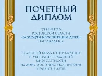 Многодетные матери могут подать документы для получения Почетного диплома Губернатора Ростовской области «За заслуги в воспитании детей»