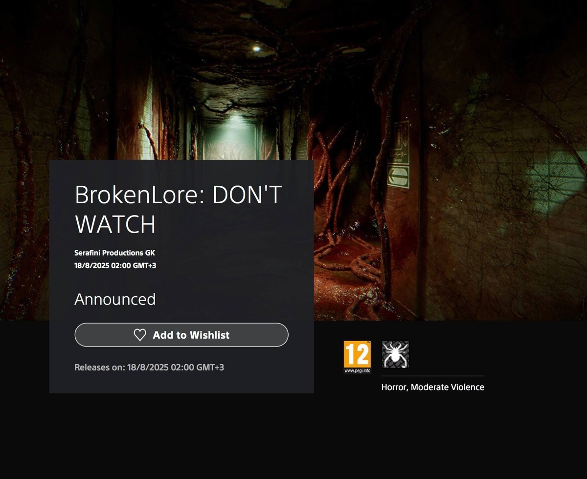 BrokenLore: DON'T WATCH — психологический хоррор от первого лица, который выйдет на PlayStation 4 и PlayStation 5 18 августа 2025 года. Главный герой — Шинджи, молодой геймер-хикикомори из Токио, который живёт в изоляции и страдает от финансовых проблем. Его жизнь наполнена долгами, неоплаченной арендой и напряжёнными отношениями с родителями. Сюжет разворачивается вокруг постепенного разрушения психики главного героя. Шинджи пытается справиться с тревогой и одиночеством через видеоигры, но его реальность начинает искажаться. В его квартире появляется зловещая сущность — Хякуме, существо со множеством глаз, которое наблюдает за героем и ждёт момента для нападения. Геймплей сосредоточен на исследовании квартиры Шинджи и его внутреннего мира. Игроку предстоит взаимодействовать с предметами, решать головоломки и избегать встречи с Хякуме. Особое внимание уделяется атмосфере напряжения и психологическому давлению. Игра обещает погрузить игроков в атмосферу псих Показать полностью... D